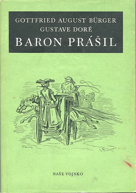Podivuhodné cesty po vodě i souši, polní tažení a veselá dobrodružství Barona Prášila jak je vypravuje při víně v kruhu přátel. Z německého originálu „Wunderbare Reisen zu Wasser und zu Lande, Feldzüge und lustige Abenteuer des Freiherrn von Münchhausen, wie er dieselben bei der Flasche imZirkel seiner Freunde selbst zu erzählen pflegt“, vydaného nakladatelstvím Insel-Velag, Lipsko, 1921, přeložil a upravil Jiří Kolář za spolupráce Jiřího Havlíka. Graficky upravil, obálku a vazbu navrhl Method Kaláb, laureát státní ceny. Ilustroval Gustave Doré. Doslov napsala Bohumila Grögerová. 1. vydání v Našem vojsku.