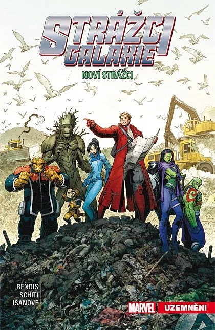 Strážci galaxie byli UZEMNĚNI! Kosmem křižující superhrdinové uvízli – ze všech možných míst zrovna na Zemi! A aby to bylo ještě horší, nejsou už ani tak docela týmem. Co by měl takový městský vesmířan jako Peter Quill dělat? Zatímco Groot prozkoumává pozemské lesy, může si Angela z Hevenu najít místo mezi hrdiny Midgardu? Gamora, nejnebezpečnější žena galaxie, se mezitím stane nejnebezpečnějším cílem S.H.I.E.L.D.u – jenže ona se nezastaví, dokud se nedostane k Thanosovi! A když už je řeč o tom fialovém magorovi – mohl by být šílený Titán opravdu tím jediným, co dokáže dát tenhle tým opět dohromady? Brian Michael Bendis zakončuje své působení u Strážců galaxie ve velkém stylu! V této knize najdete sešity Guardians of the Galaxy (2015) č. 15–19 z pera Briana Michaela Bendise, na kterých se kresebně podíleli Valerio Schiti, Richard Isanove a další.