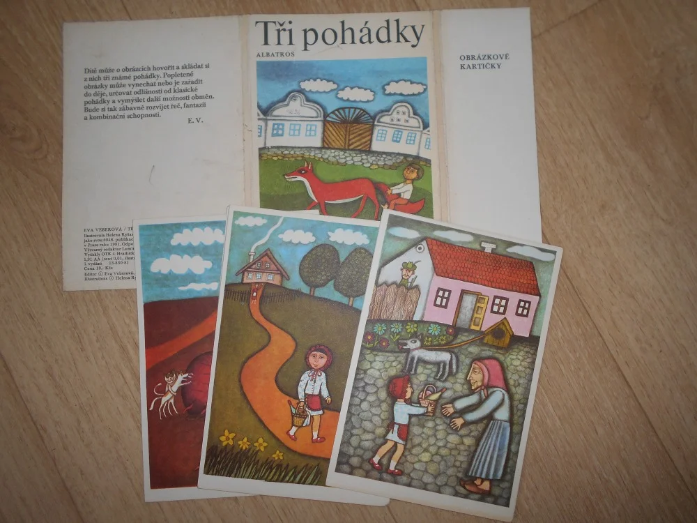 Vazba: volné listy v obálce -z nichž se sestavují příběhy - hra.