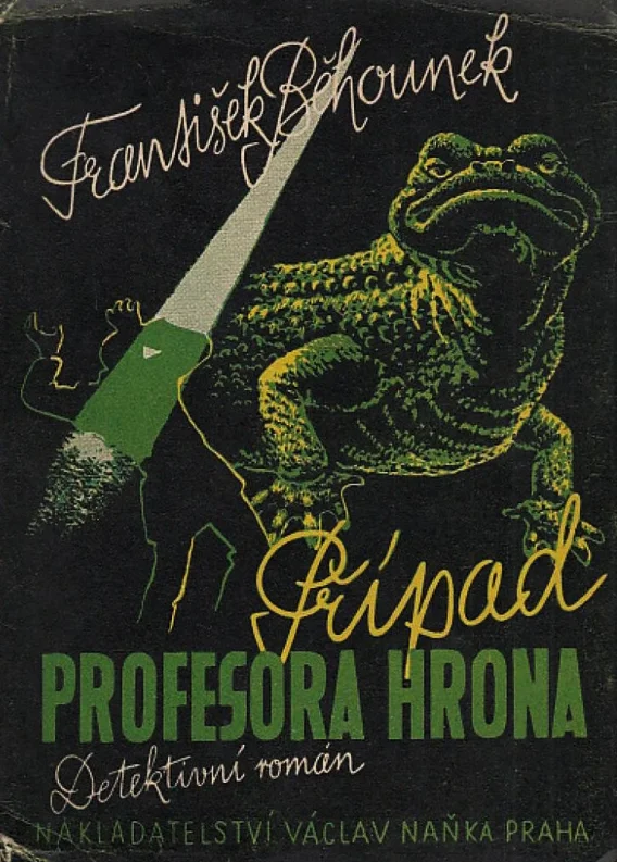 První čistě sci-fi román od Josefa Běhounka. Původně vyšel v roce 1947 pod názvem *Případ profesora Hrona* a v roce 1968 byl lehce upraven a znovu vydán jako *Dům zelených přízraků*. Běhounek v něm navazuje na tradici Julese Verna, zejména na jeho *Vynález zkázy*, a varuje před nebezpečím nekritického využívání technických inovací skrze osud vědce posedlého svým vynálezem. Příběh byl zřejmě inspirován nedávným použitím atomové bomby, které silně rezonovalo ve společnosti. Román, určený pro dospělé čtenáře, je považován za Běhounkovo nejvýznamnější dílo.